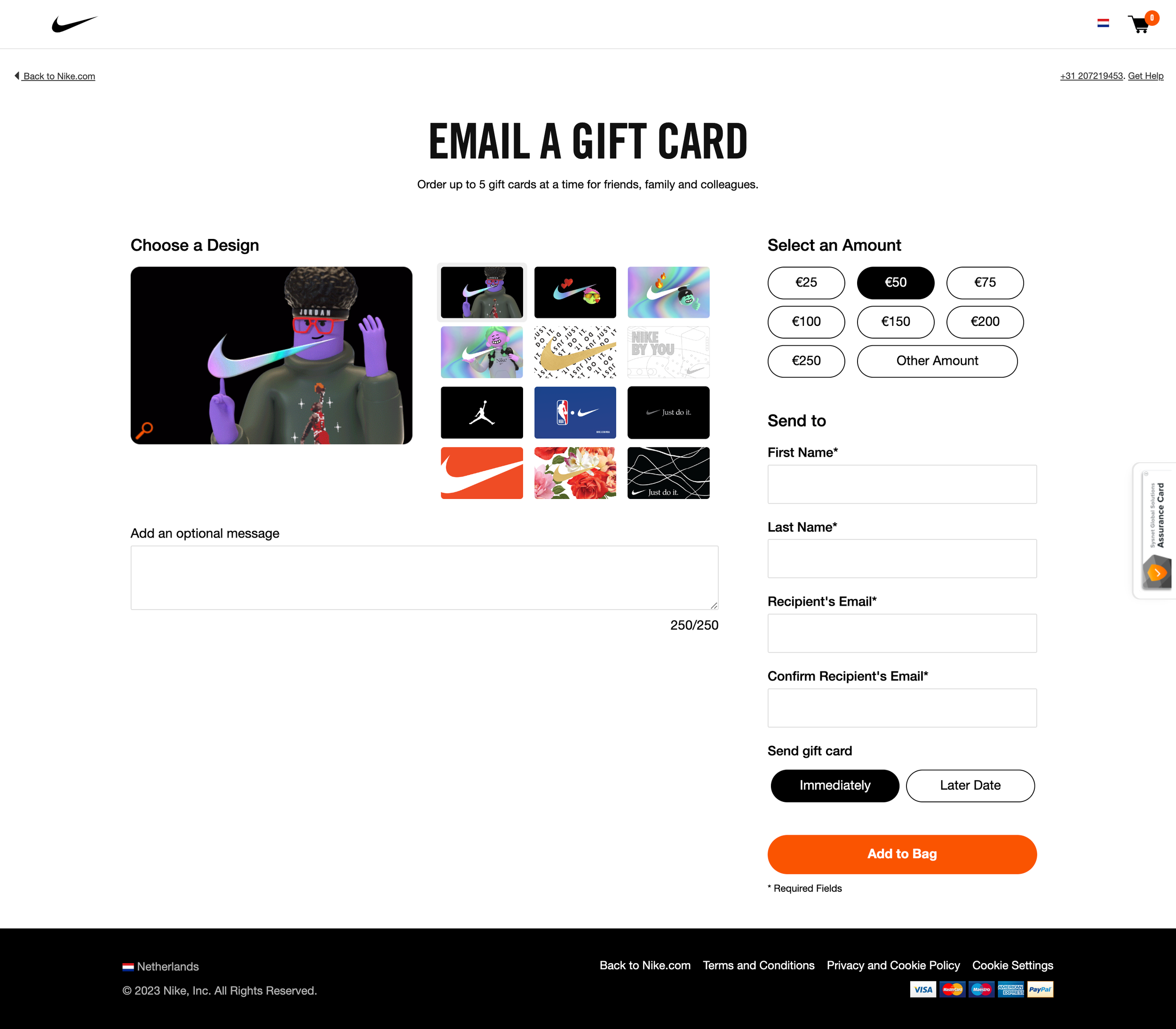 Creating the Nike.com EMEA experience for shoppers to order gift cards direct from the website ahead of our Peak Holiday sale season.